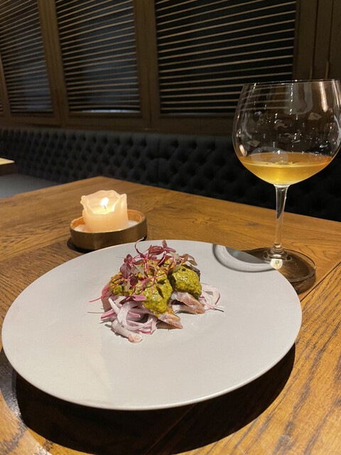 新鮮なお魚のカルパッチョ、味付けのソース、