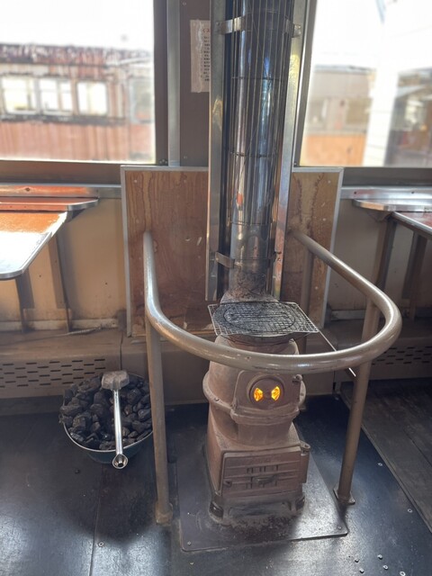 ストーブ列車は最高だね。スルメと日本酒で朝から贅沢に列車の旅・・・・。