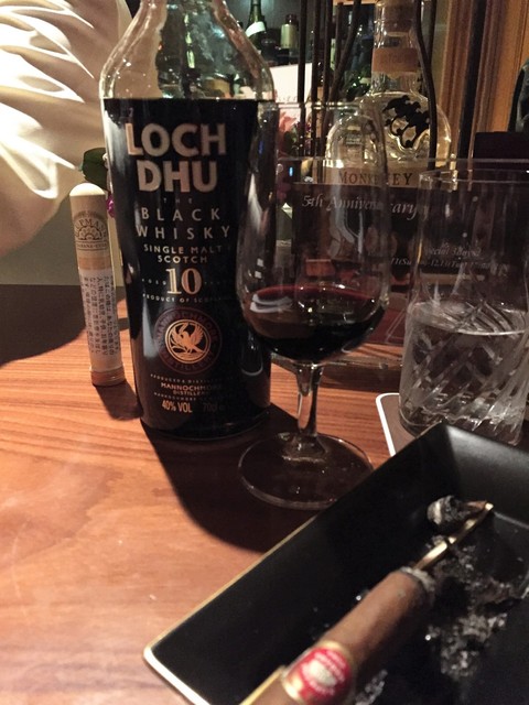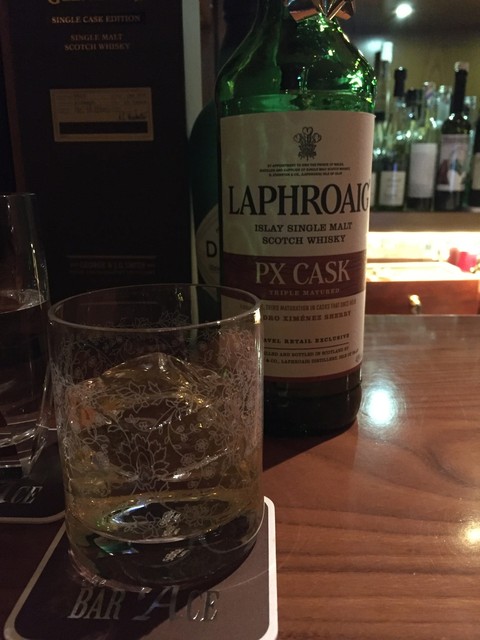 4杯目樽出しラガブーリン、トワイスで。 グラスはアードベックですけど。