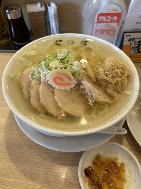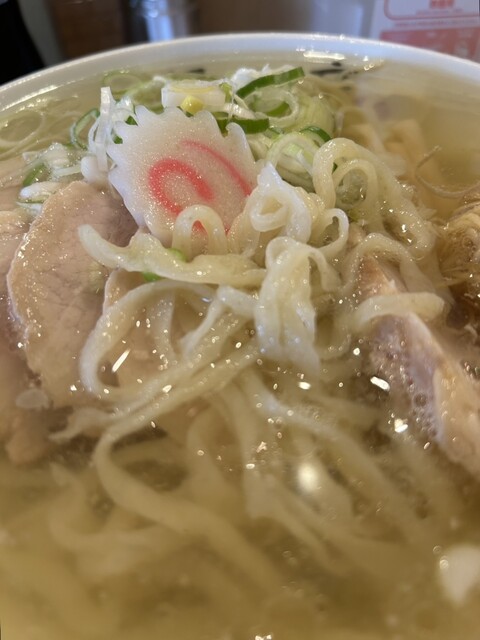 麺まで見える澄んだスープにうっすら旨味油が浮いてます。