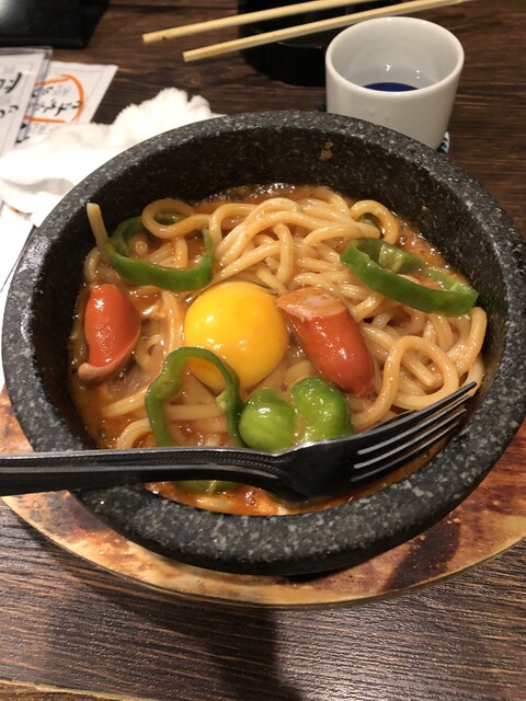スパゲティ・ナポリタン:値段不明、鉄鍋でサーブされます。麺もキチンと太麺。食べてる間に玉子が絡んで大変おいしい。