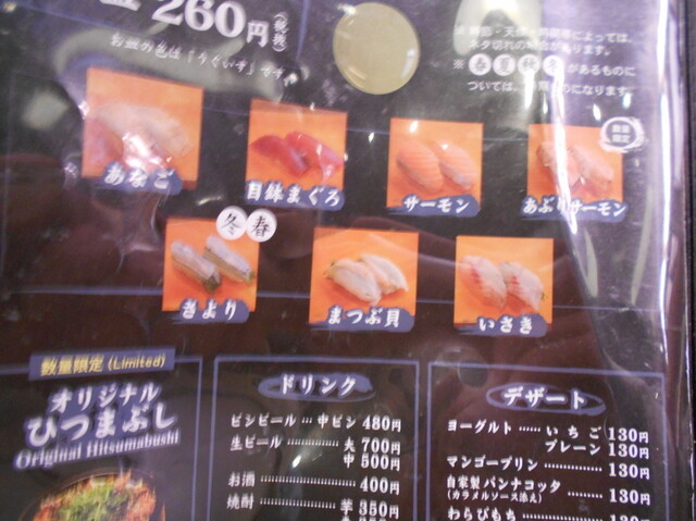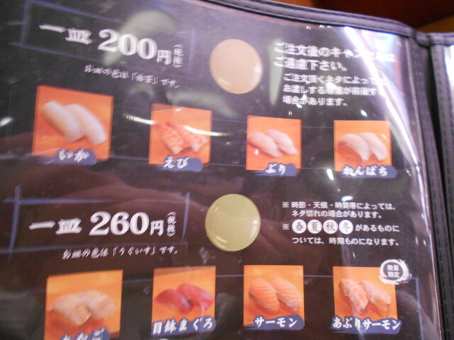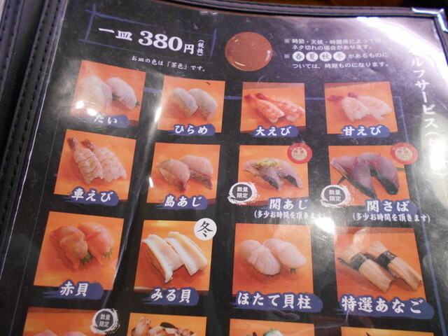 「関サバ、380円」、「関アジ、380円」~ 全て2貫のお値段です~ (税抜)