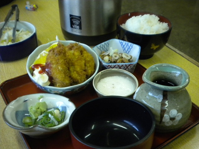 この日のつくし御膳。 カキフライが3個付いて、ザル蕎麦がハンパ無いよお~~・・・・・もう限界・・・・・・・。
