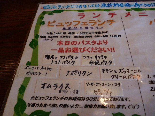 パスタを一品選んで、好きなビュッフェとドリンクが食べ放題。