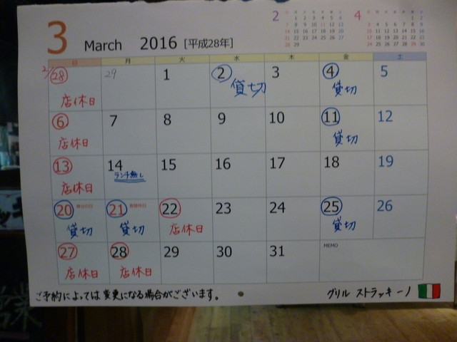 2016.3月~今月の予定表を見て来てね~♡