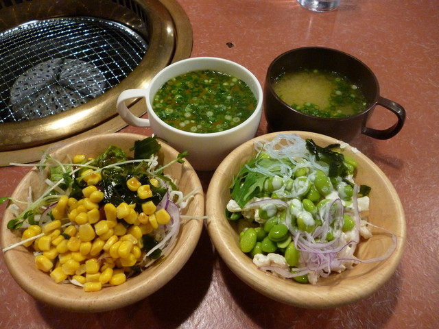 食べ放題なのは、「ライス」「味噌汁」「卵スープ」「野菜サラダ」「マカロニサラダ」。