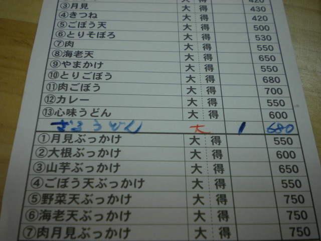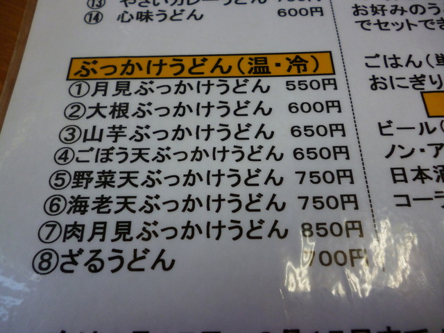 ざっとメニューを見渡しますが、ぶっかけ系はあっても、ざるうどんの文字が見当たらない・・?