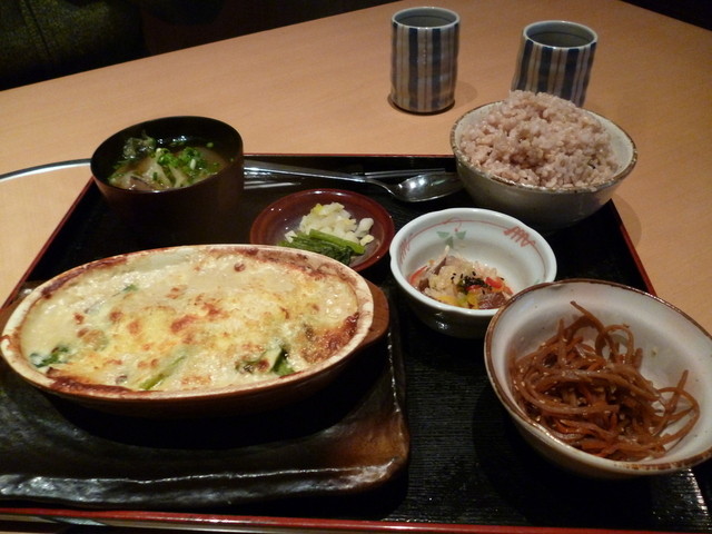 野菜たっぷり豆乳グラタンランチ、734円。