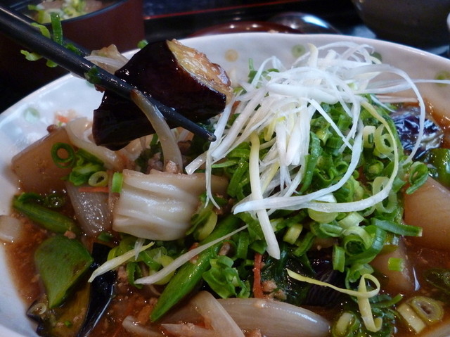 肉みそ野菜そばは完全に裏をかかれた感じ。 想夫恋の様なパリッと焼かれた部分が特に美味い!