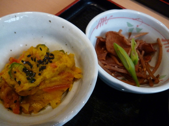 小鉢の、「かぼちゃの酢の物」が面白い。 隠し味にカレー風味がちらっとするトコなんざセンスが光る。