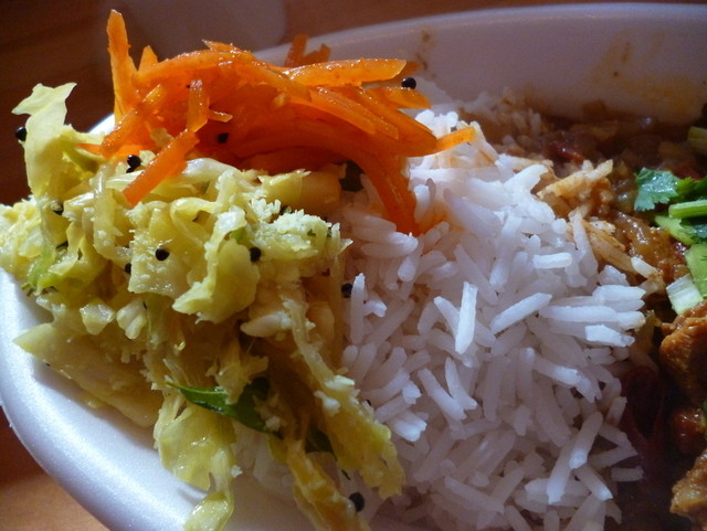 炒めた野菜(ニンジン)と酸っぱい野菜(キャベツ)は、個々に食べると意味が解りませんが、