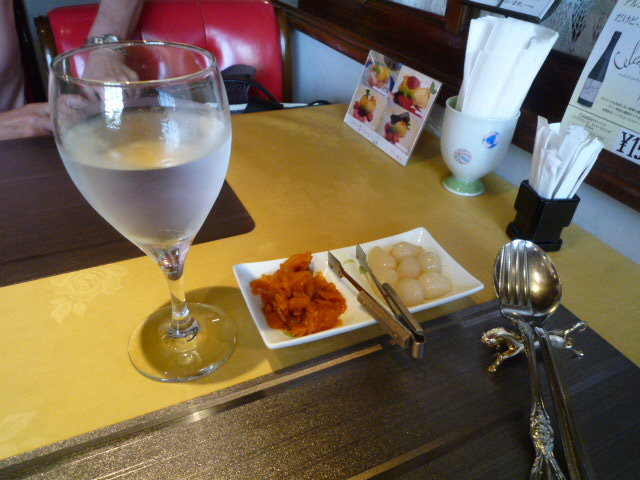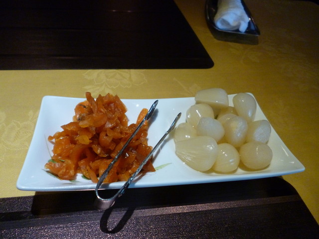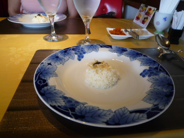 まず、福神漬け、ラッキョウが来て、ご飯が運ばれます~