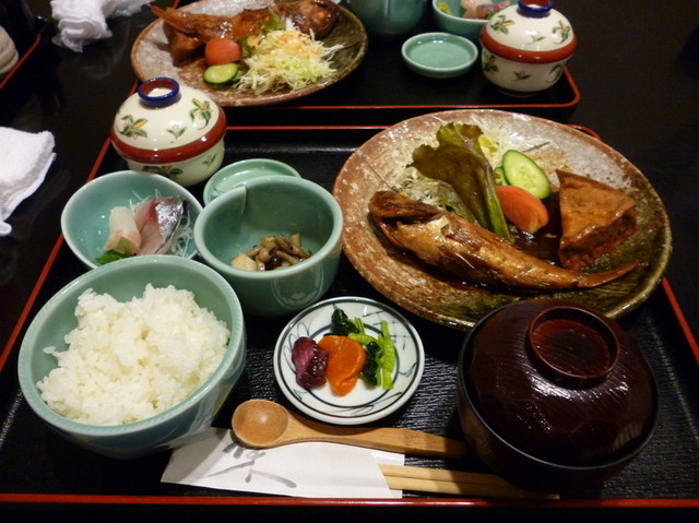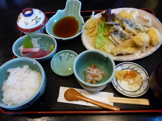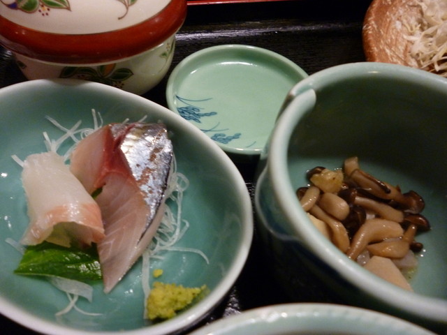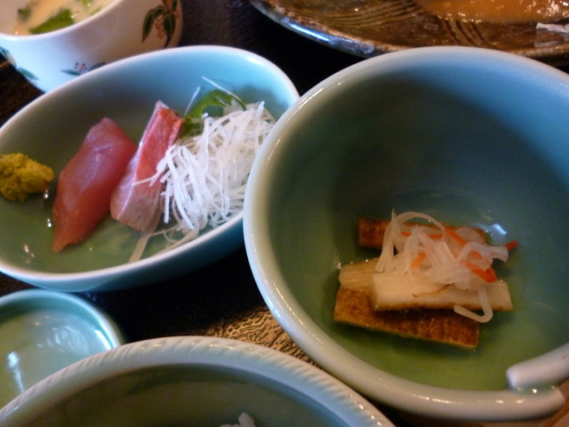 奇をてらった物は無く、王道的な定食~ 刺身は鯛と鯵。