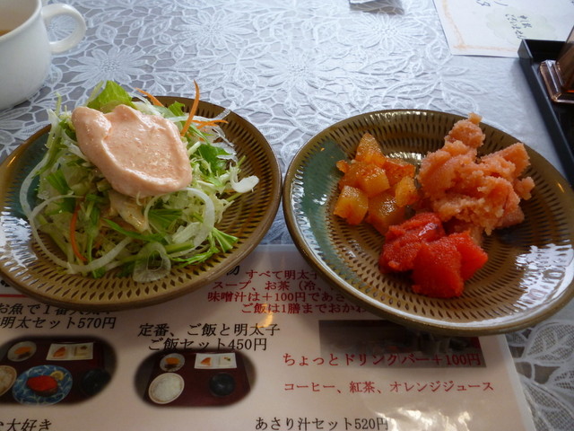 まずは注文ですね~ 一番人気とありましたんで、「鮭明太子セット、570円」。