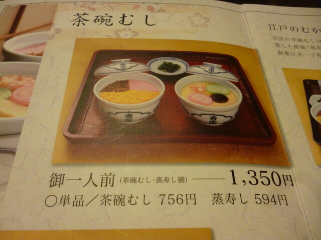 注文は「御一人前、1350円」。 お店の看板メニューで、茶碗蒸しと蒸し寿司が付きます~