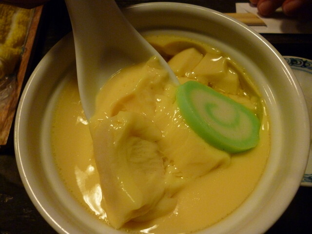 茶碗蒸しの具材は、銀杏、鶏肉、かまぼこ、筍、麩、魚が入ってますね。 特に珍しいモノは無いです~