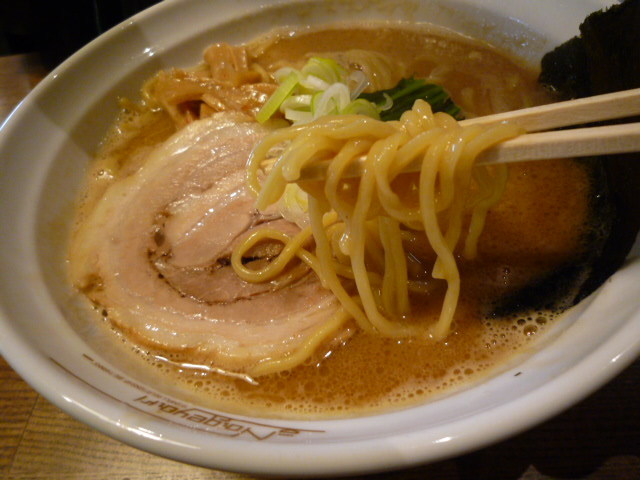 とろみが付いたスープは「味噌ラーメン」にも見えるし、「醤油豚骨」にも見えます~