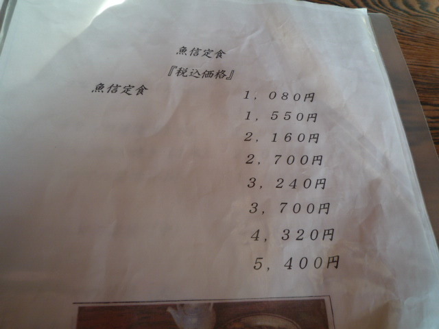 注文は「うな重、1500円」と、「魚信定食、2160円」をチョイス~ (税込)