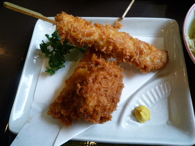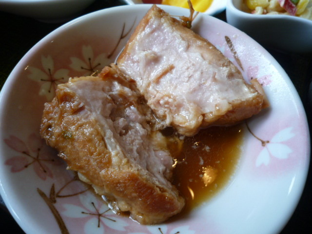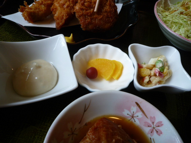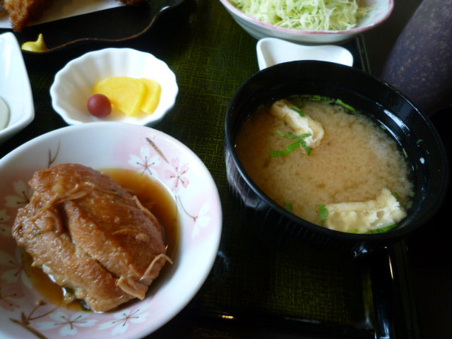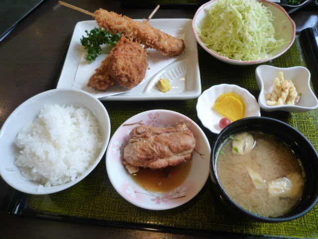 内容は、串カツ2本とヒレカツ。 どでかい角煮が中央に鎮座! (゚д゚)!