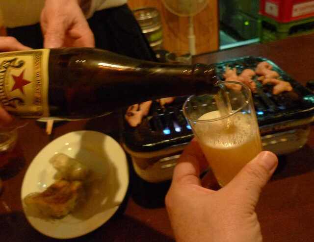 ホルモンの焼き具合を確認しつつ生ビール(‾¬‾*)じゅるぅ~
