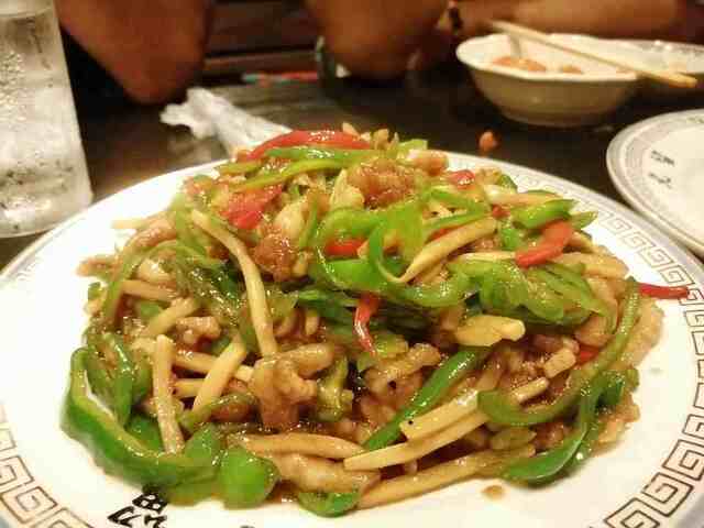 豚の三枚肉をショウガとニンニクをつけ込んだたまりで焼き上げる。