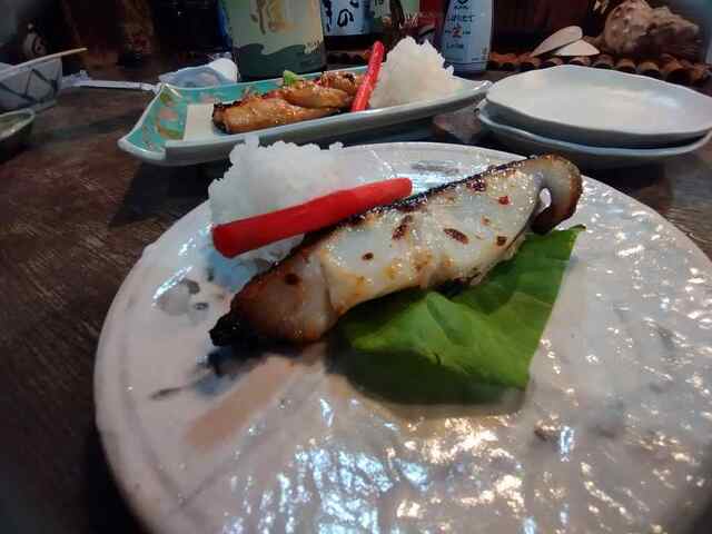 美味しい焼き魚を磯自慢で流し込む。