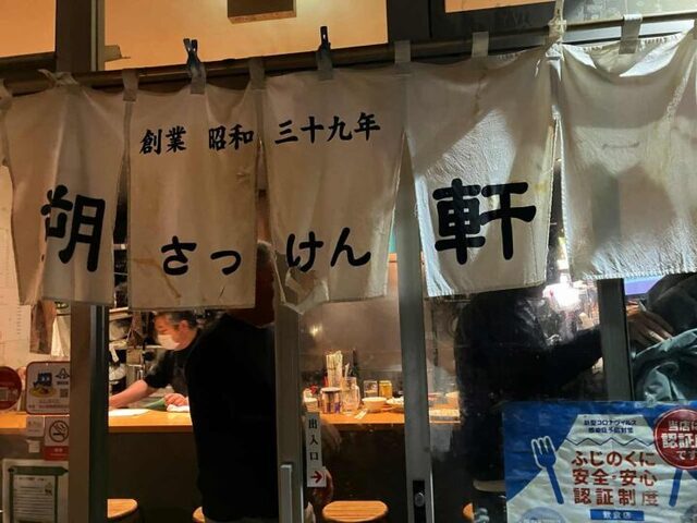 店を出るときに振り返る暖簾。ごちそうさま。また来ますね。