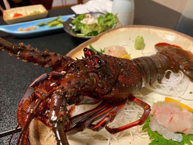 伊勢海老を頭から半分に縦割りにした味噌汁。