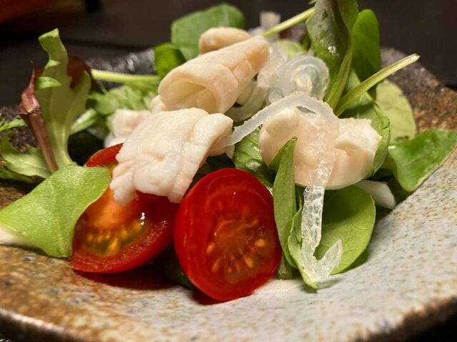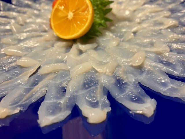 身の薄さと透明感がよく分かる。噛むほどに旨みが出る、冬のふぐらしい味。