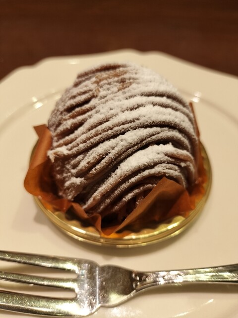 食後のモンブランは少しラム酒の風味。