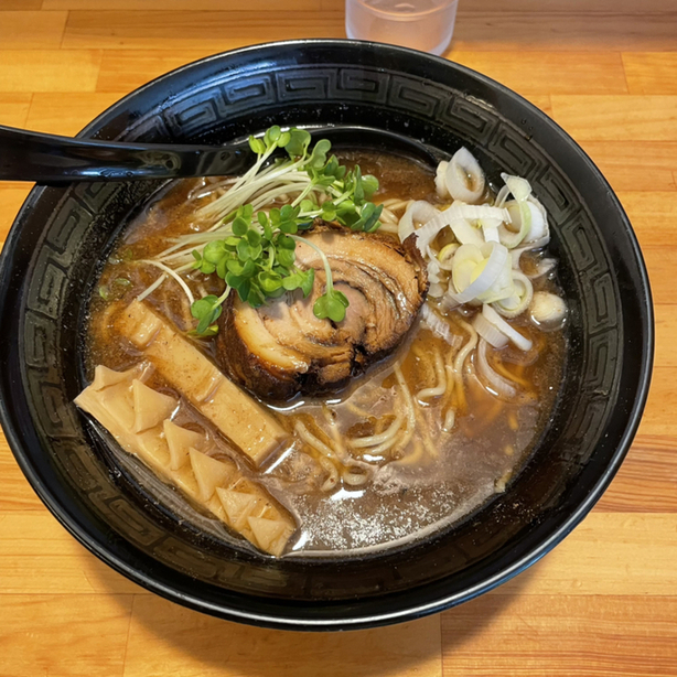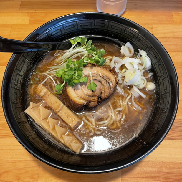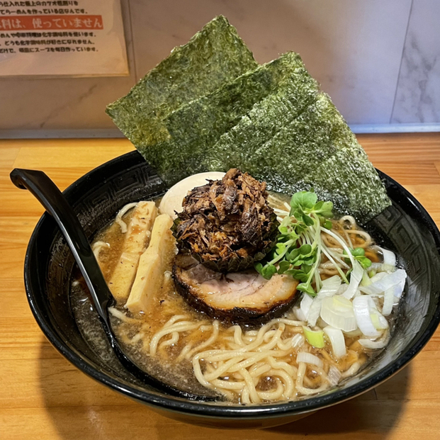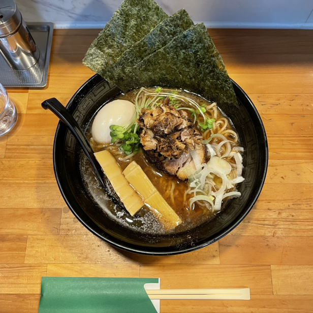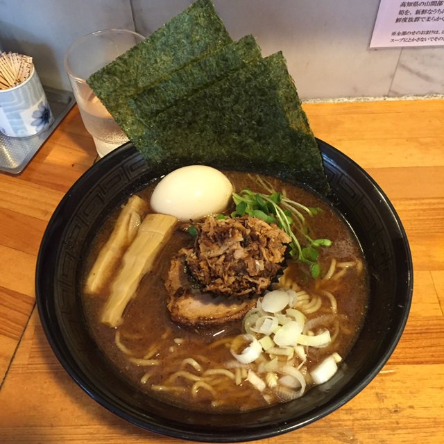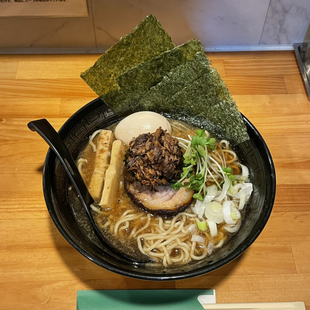 正油あらびき全部のせを注文。約10分後に着丼。