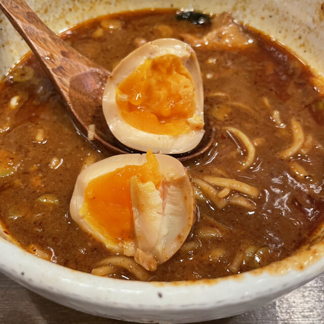 初訪問なので辛辛魚味玉らーめんを購入。辛さを聞かれ、辛辛を2とすれば3にして欲しいと回答。