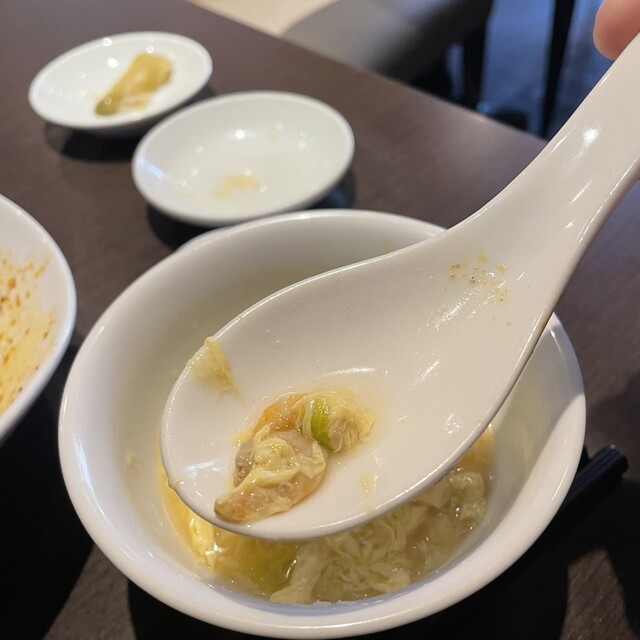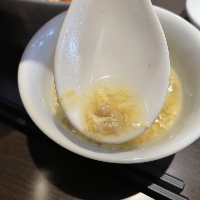 エビチリはまず十分な量。出来立ての時はしばらくソースがプチプチ言ってる。ソースがメチャクチャ美味い。主体はネギと生姜の微塵切りだろうか。大ぶりのエビが7尾も入っていた。今まで食べたエビチリとは別格であり、芸術作品。シェフのアートを感じる。この点でフレンチと共通する。