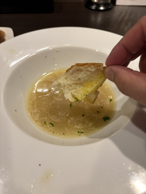 プレロティ、美味しかったです。食べやすいサイズに切ってもらえたので、骨があっても全然問題なく、いただくことができました。ムール貝も美味しく、スープが美味しかったのでバゲット、出してもらいました。正解!