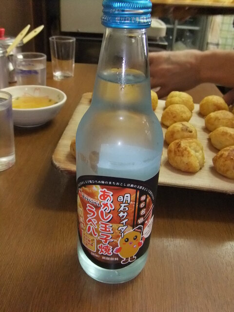 10分程待ち 店内に 明石焼き 2人前 焼きそば サイダーを注文^^
