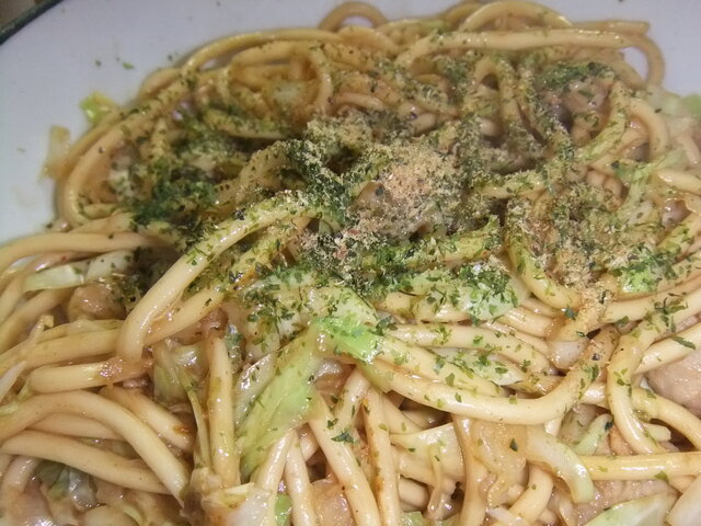焼きそば 青のり ふりました。