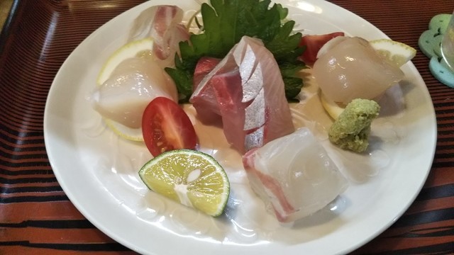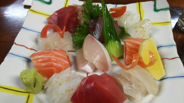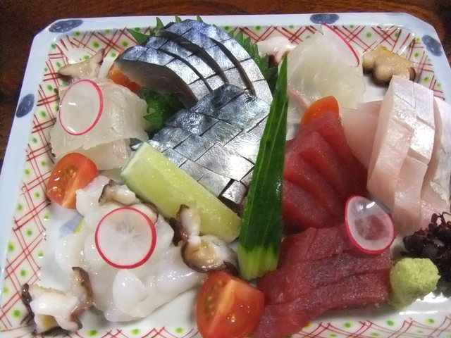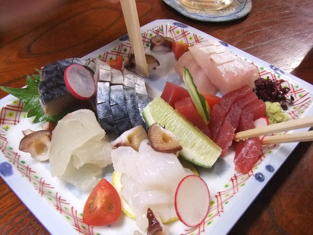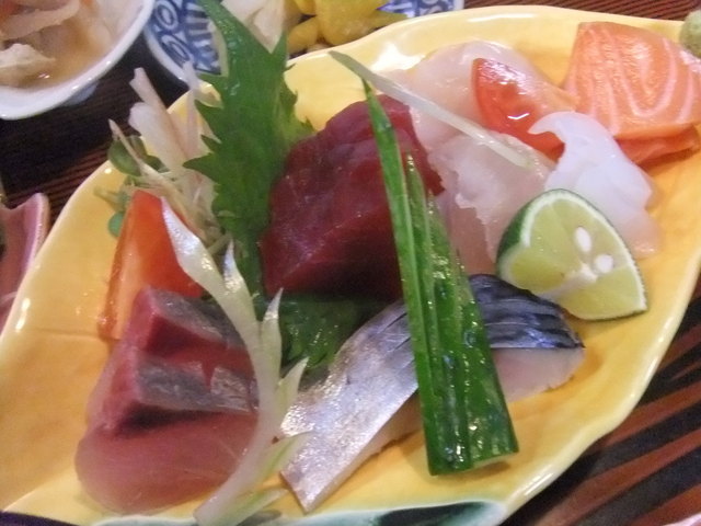 主人はうどんと刺身で悩んます。刺身定食にしました。