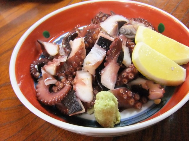 タコ刺し 幹事殿がタコを釣って来た、大将が刺身にして出してくれたおおきに^^