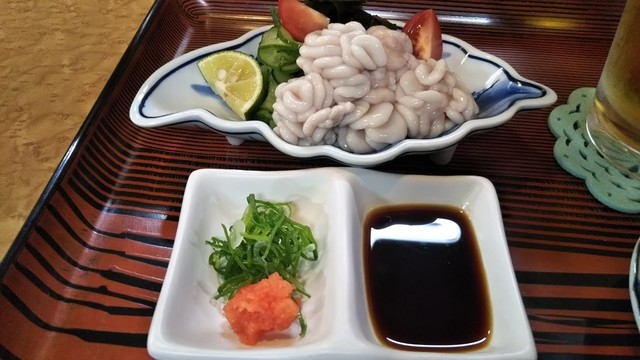 友達がタコを釣ってきた 大将が刺身にして出してくれた。おおきに^^