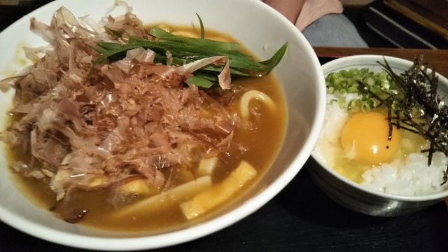 主人は餡かけカレーうどん 和出汁で凄い美味いそうです セットで玉子かけご飯(^^)