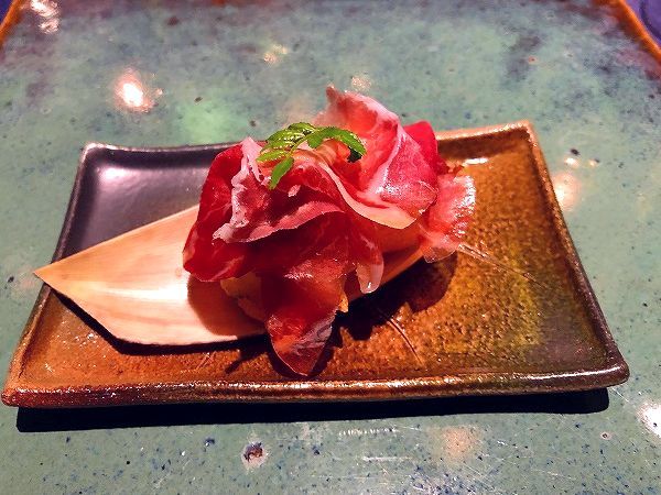 ・会津産桜肉のカルパッチョ ホワイトアスパラと桜味噌