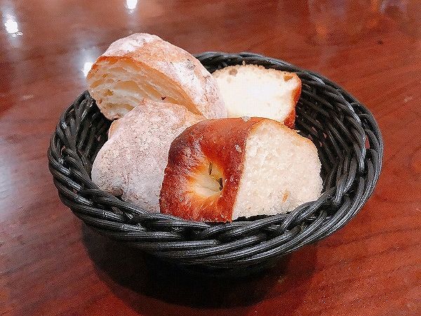 パンがお通しとなっていておかわりOKなので、