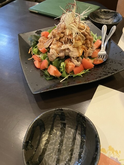 冷しゃぶサラダの中に豆腐が隠れていて、ヘルシー&ボリューミー、野菜ももりもり。