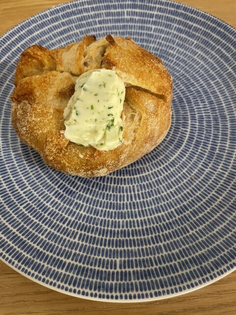 リベイクしていただくと、パンのカリもち具合が最高。のり塩のような味わい。