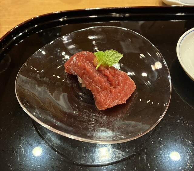 ここから握りに入ります。赤いか、トロ、雪紅葉、白甘鯛、マグロうにとろろ、穴子、蛤...