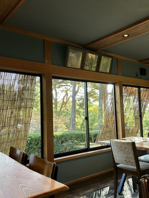 静かな空間で音楽と外の自然を眺めながら、デザートとお茶をゆったり楽しめました。
