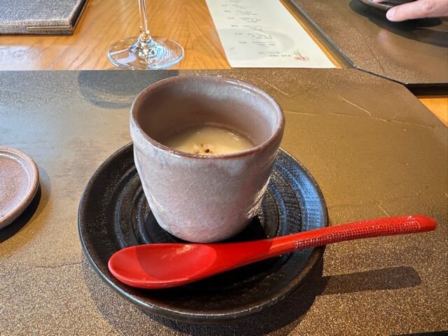 鰆炙り椀物の出汁が、うんまい!色彩鮮やかなアスパラも最高。