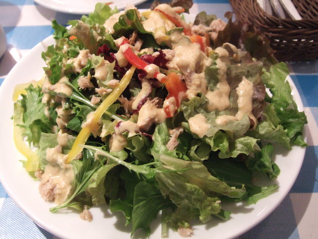 新鮮なリーフ系でツナとパプリカなどが入っている。彩も良い。