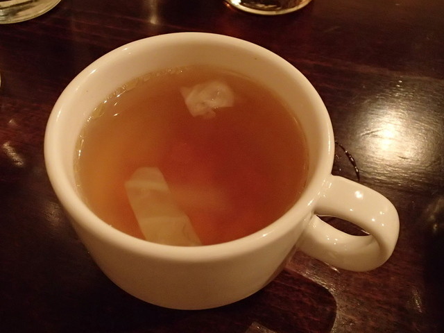 焼く前にスープを一口。これは美味しい!卵スープだが