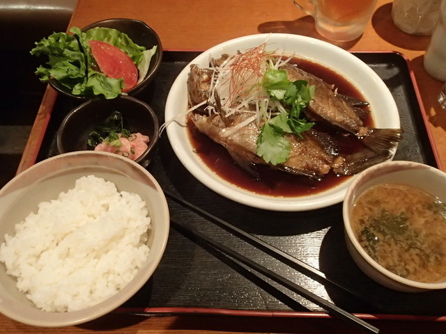 煮魚のメバルはなんと2尾。味噌汁はきっちりアラで出汁を取ってるのがわかる。